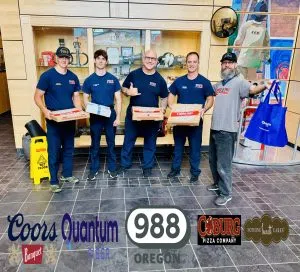 We stopped by the Oregon State Police! Thanks to our sponsors Coors Banquet, Quantum Fiber Internet, Coburg Pizza Company, and Nothing Bundt Cakes!