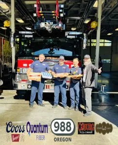 We stopped by the Lane County Fire Authority! Thanks to our sponsors Coors Banquet, Quantum Fiber Internet, Coburg Pizza Company, and Nothing Bundt Cakes!