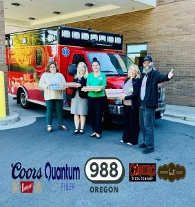 First Responder Friday! We stopped by the McKenzie/Willamette Medical Center! Thanks to our sponsors, Coors Banquet, 988 Oregon, Quantum Fiber Internet, Coburg Pizza Company, and Nothing Bundt Cakes!